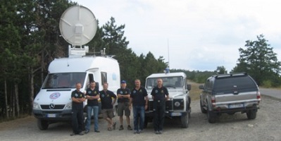 Prove tecniche dell'Associazione CER a Monterenzio (BO) per verificare le procedure di collegamento satellitare in banda Ku.